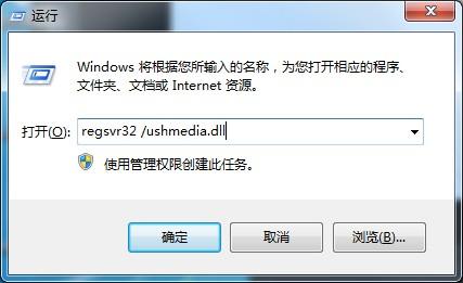 1、使用键盘快捷键WIN+R或者点击开始-运行,输入命令:regsvr32 /ushmedia.dll 然后回车确定;