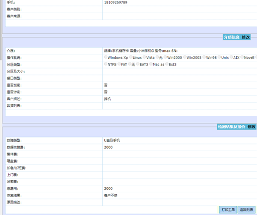 达思公司于2018年9月14日收到了西安万度公司柳健发来的被摔得粉碎的小米max手机。并且当日填写了数据恢复工作单,数据恢复的价格为2000元。由于在柳健发手机前已经数据恢复费的报价2000-3000元,因为西安万度公司是达思公司的老客户,因此给这个手机的数据恢复费报了最低起价2000元。柳健表示认可。