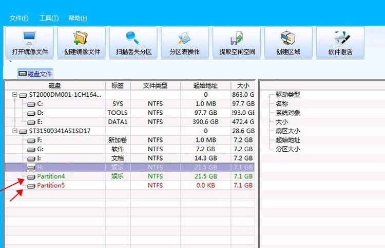 第二步:扫描完成后,双击打开会扫到一些丢失的分区,双击打开。