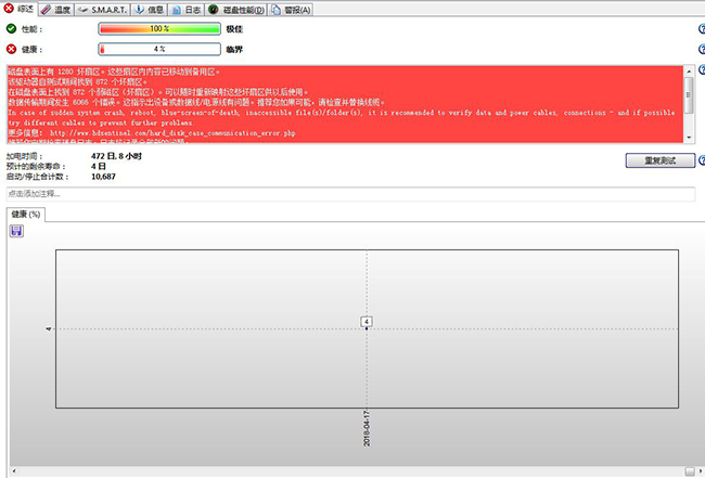 拿到硬盘插到阿波罗检测机上后,通过第三方软件看到硬盘确实有很多坏。